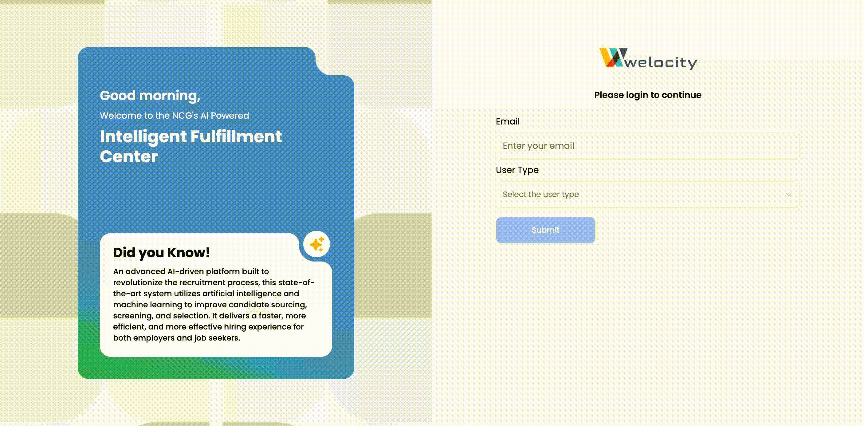 Welocity.ai is an AI-powered intelligent fulfillment center designed to revolutionize the recruitment process. This guide will walk you through the simple registration process for recruiters and vendors looking to join our platform.