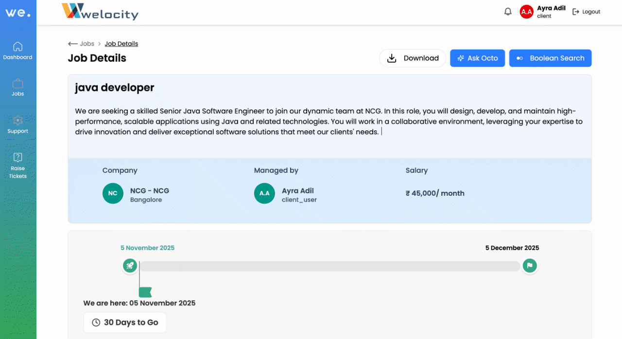 You can also use options like “Ask Octo” and “Boolean Search” within the platform to help you navigate and understand the JD better.